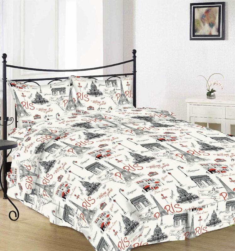Простынь на резинке вилена бязь голд эйфелева башня красный размер 160х200+25