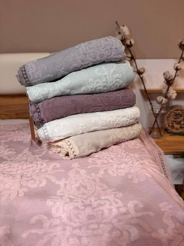 Махрове простирадло з мереживом Вишукане поєднання затишку та стилю. М’яке бавовняне полотно (льон-махра) дарує комфорт і приємні відчуття на дотик, а ніжне мереживо додає особливого шарму. Ідеально підходить як для щоденного використання, так і для створення особливої атмосфери в інтер’єрі. Розмір: 150×200 см