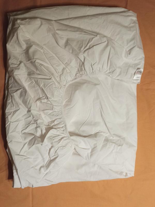 Две фирменные белоснежные простыни для матраса на резинке 190*130 (размер подойдёт на 200 при меньшей ширине матраса). Состав 78% хлопок, 22% полиэстер.