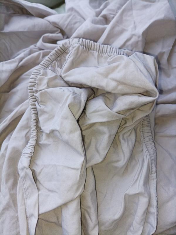 Простынь хлопка серого цвета хорошего качества на резинке производитель Пакистан.е белые пятна, но их не видно, они на краю простыни недорогое пятнышки небольшие, маленькие