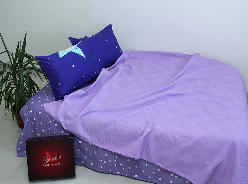 Простынь-покрывало пике 160х235 см. клетка сиреневая