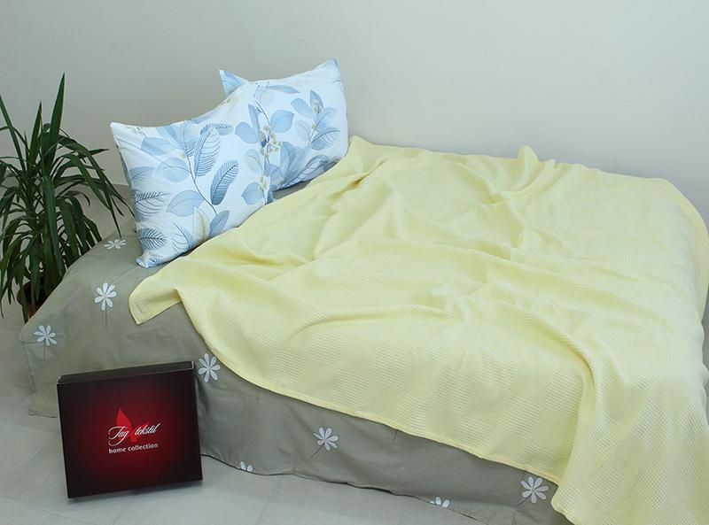 Простынь-покрывало пике 160х235 см. клетка желтая