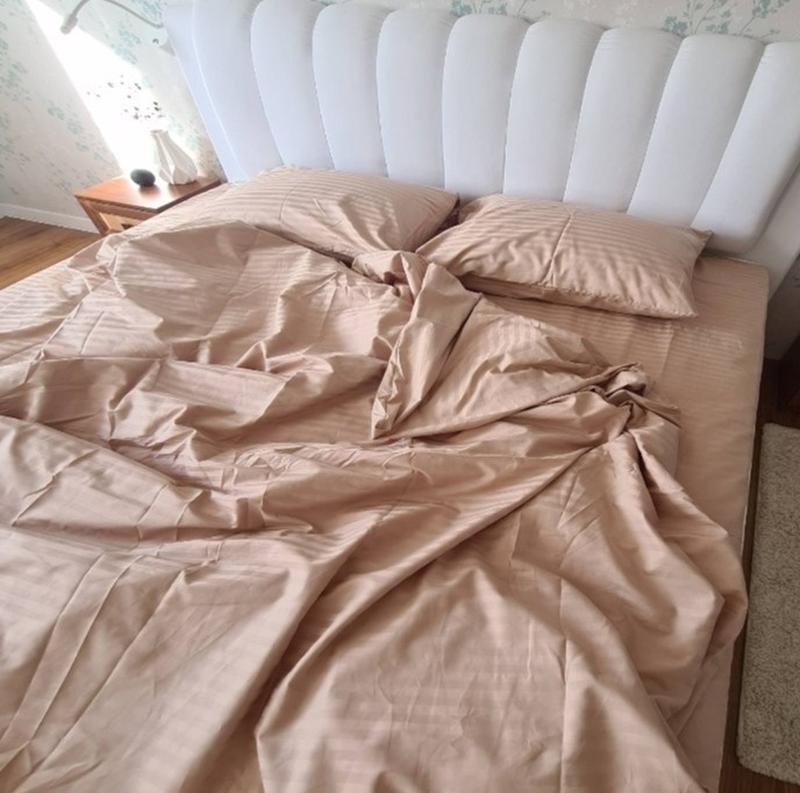 Набор простынь 240х220см +наволочки 2шт страйп сатин персик 1/1см тм комфорт текстиль