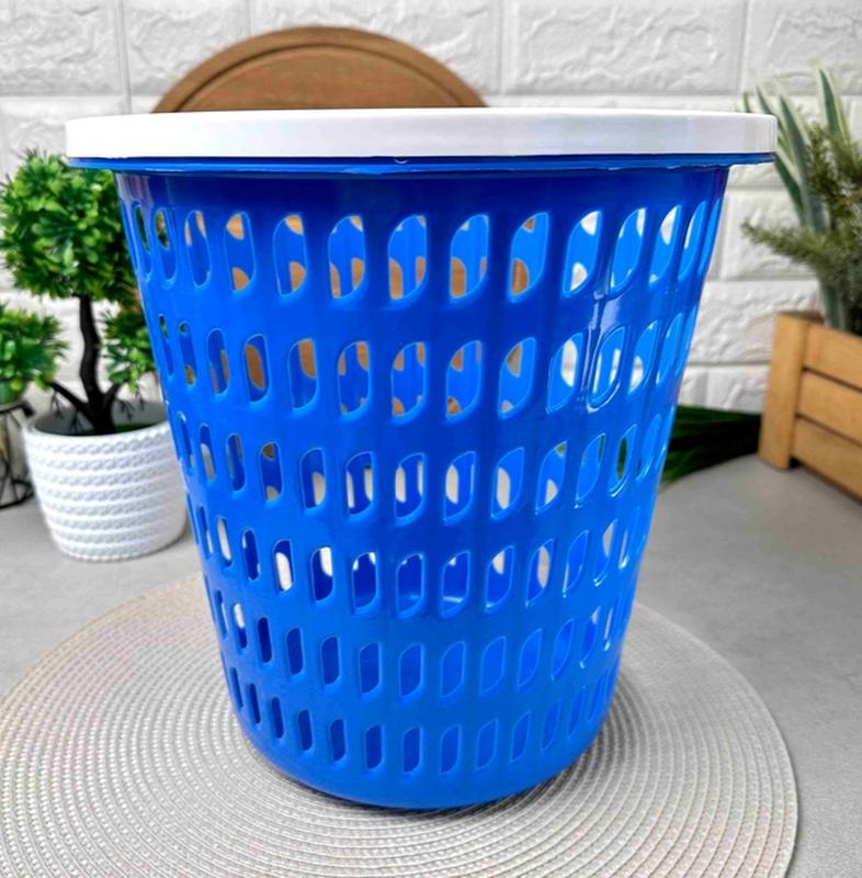 Офисная корзина для мусора 10 л с фиксатором пакета для мусора. Благодаря кольцу-фиксатору мусорный пакет надежно закреплен. Размеры: 27.5*27 см Страна производства Украина