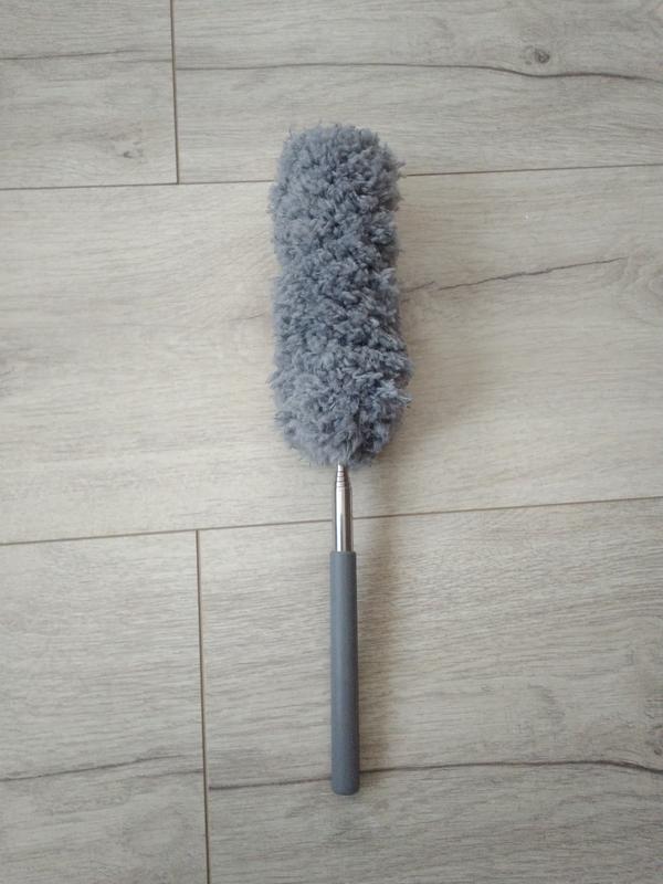Невелика телескопічна щітка для прибирання. Таку щітку можна використовувати вдома для прибирання пилу та павутиння. Можна використати також для автомобіля, щоб змітати пилюку з кузова. Щітку можна згинати для більшої зручності, як показано на фото. Не рекомендую намочувати у воді, щітка стає дуже важкою і незручною у користуванні. Загальна довжина : 32-79 см. Довжина щітки : 16 см.