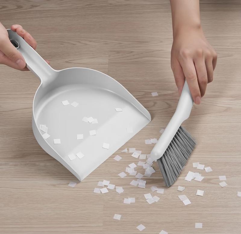 Идеально подходит для быстрой уборки таких помещений, как кухня, ванная комната или автомобиль. Благодаря идеальному углу наклона совка даже самые маленькие крошки собираются, а не сползают под них. Совок и щетку можно удобно хранить, так как щетка фиксируется в ручке миски. Вы можете повесить совок и щетку на крючок, так как оба имеют отверстия в верхней части. Угол наклона щетки и круглая форма головки щетки позволяют легко достигать даже углов и тесных мест.