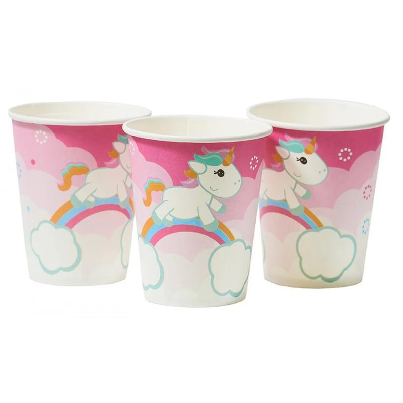 Планируете вечеринку? Позаботьтесь о красивом оформлении стола – скатерть, посуда, салфетки и дополнительный декор. Если у вас праздник в стиле "Однорог", рекомендуем выбрать тарелки и стаканчики бумажные с тематическими рисунками. Вам отлично подойдет набор стаканчиков "Однорог". Объем: 210 мл. В упаковке 10 штук. Материал: картон, поэтому посуда очень легкая и не бьется. Одноразовые бумажные стаканчики очень практичны, ведь их не нужно мыть. Их удобно брать на выездную вечеринку или на природу. Стаканчик изготовлен из органического материала, поэтому он экологичен и безопасен для природы.