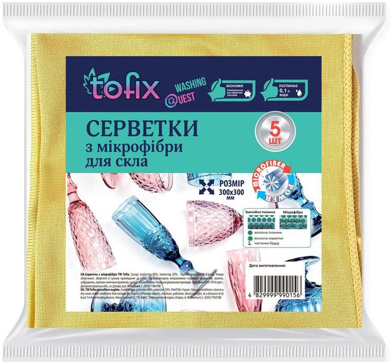 Салфетка микрофибра tofix для стекла 30х30 см 5 шт