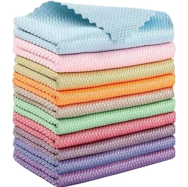 Комплект 5 штук Fish Scale салфетки из микрофибры разноцветные Не оставляет следов: не портит покрытие, чтобы избежать обесцвечивания и загрязнения при очистке поверхности изделия и защитить вашу любимую мебель. • Дизайн сетки в виде рыбьей чешуи: уникальное плетение чешуи может легко улавливать пыль, быстро удалять грязь. • Волшебная салфетка для чистки из микрофибры: высококачественные салфетки из микрофибры не оставляют ворса, разводов от неабразивных и химических веществ. Крепкие, пригодные для многоразовой и машинной стирки. • Многофункциональность: это не только отличная салфетка для уборки пыли или мытья стекла. Также они идеально сочетаются с бытовыми моющими средствами для работы по дому, полированием кухонной посуды, протиранием посуды и салфеток для уборки автомобиля, полированием ювелирных изделий и т.д. • Хорошо поглощают влагу: Наше мягкое кухонное полотенце хорошо поглощает и быстро высыхает. Характеристики: 1. Ткань из микрофибры идеально подходит для очистки стекла. Не оставляет царапин и разводов. 2. С помощью очищающих волшебных тканей вы можете сразу сделать все гладкие поверхности блестящими. 3. Он изготовлен из 80% полиэстера и 20% полиамида. Смесь полиэстера и полиамида имеет гораздо большую всасывающую силу, чем другие. 4. При необходимости его можно использовать сухим и мокрым. Машинная стирка при 40-50 градусах. Не используйте с отбеливателем и смягчителем. 5. Подходит для очистки очков, зеркал, мебели, кухни, кухонной техники, ванной комнаты, кранов, телевизора, ноутбука, планшета, автомобилей. 6. Многократный и экономящий ваши деньги, чрезвычайно абсорбирующий, прочный и универсальный. Категория продукта: ткань для чистки. Материал: тончайшее волокно. Комплект включает: 5 полотенец