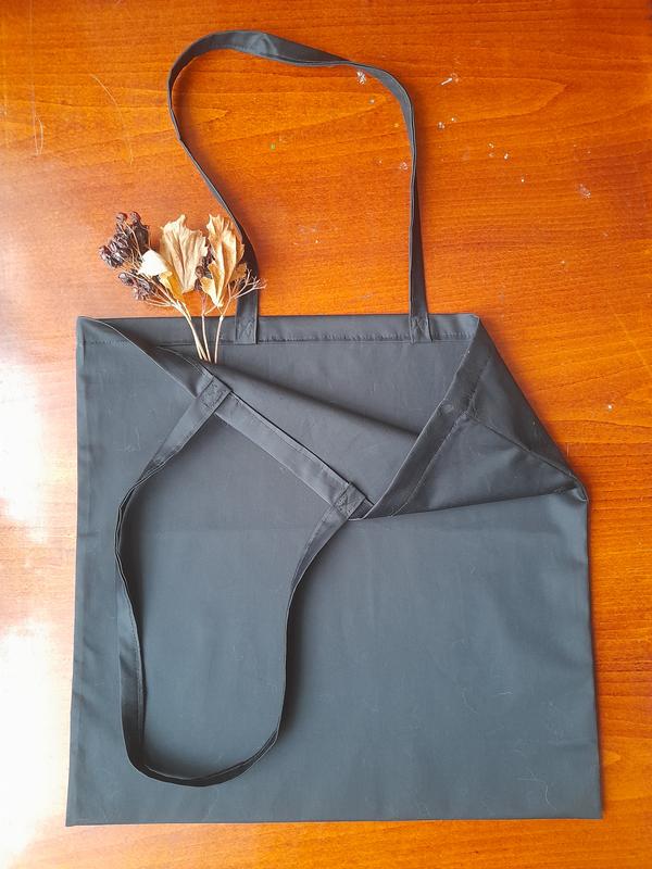 Удобная, прочная сумка. Ткань - коттон ( 97% хлопок, 3% эластан), страна-производитель Италия. Достаточно прочная, плотная ткань. Все края надежно скрыты. Ширина 41см, высота 41 см, длина ручки 63 см, ширина ручки 1,8 см. Цвет - черный.