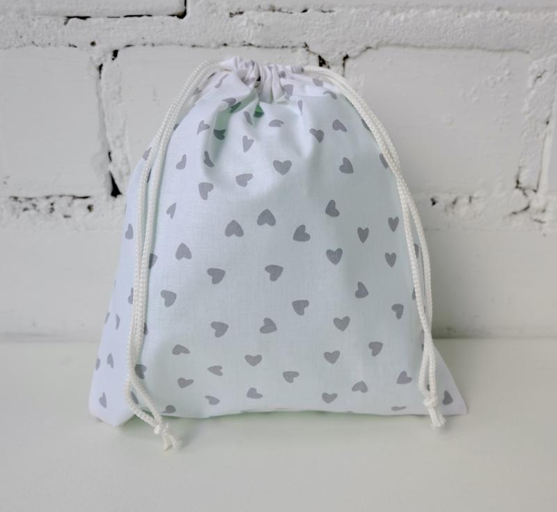Еко мішечок сірі сердечка 23х21 см, мішок в сердечка для зберігання/пакування