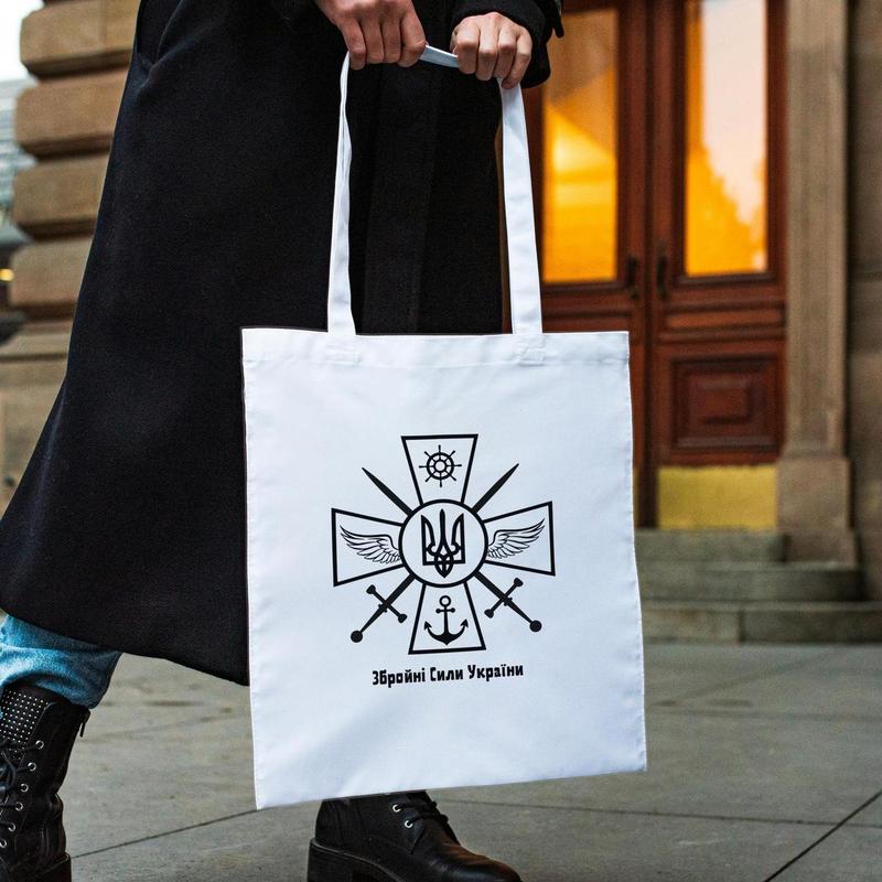 Сумка шопер із принтом "збройні сили україни" біла |швидка доставка|