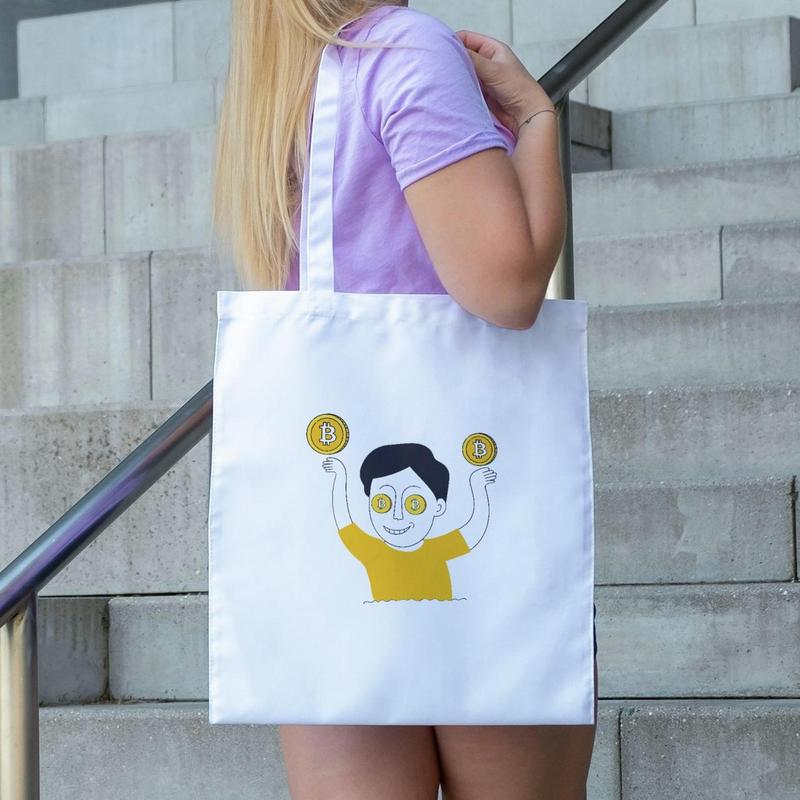 Сумка шопер із принтом "bitcoin" біла |швидка доставка|