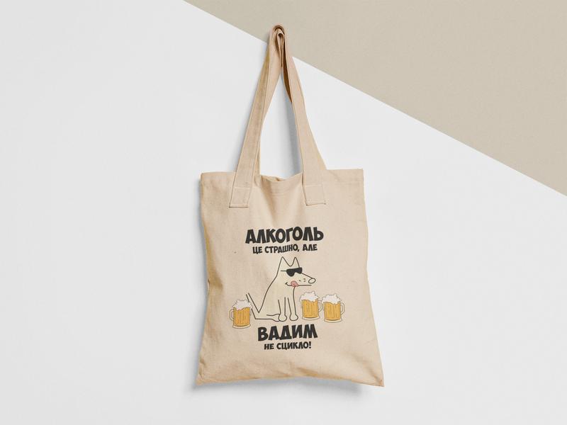 Эко сумка шопер с принтом алкоголь це страшно але вадим не сцикло вадим вадик, размер 38х4...
