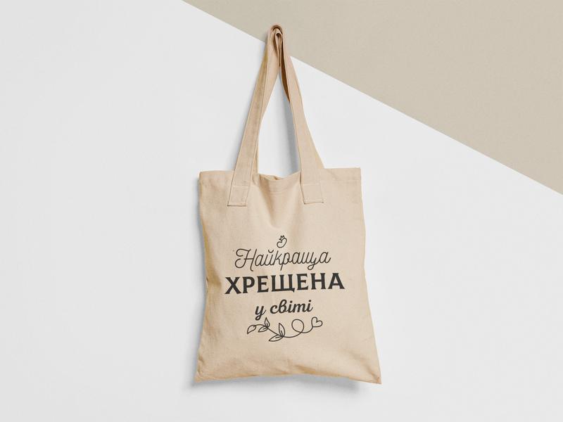 Эко сумка шопер с принтом найкраща хрещена у світі для крёстной, размер 38х40см, хлопок