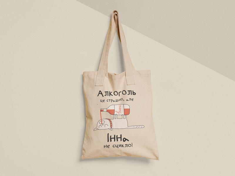 Эко сумка шопер с принтом алкоголь це страшно але інна не сцикло инна, размер 38х40см, хло...