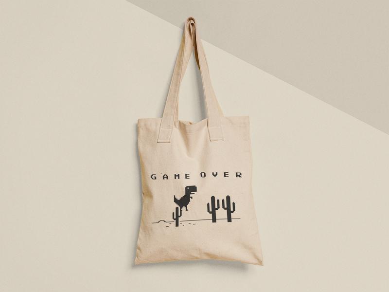 Эко сумка шопер с принтом game over гейм овер дракон размер 38х40см, хлопок
