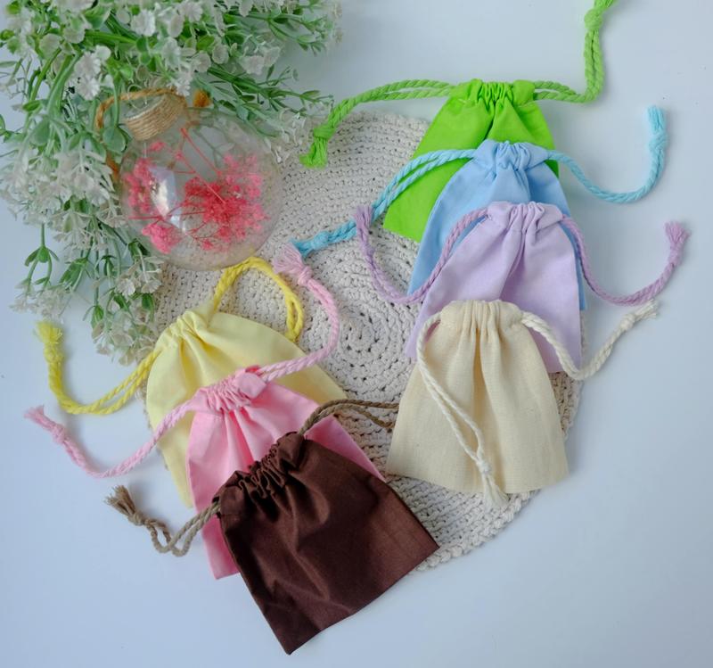 Текстильные мешочки для хранения и упаковки бижутерии, аксессуаров, мелочей. В наборе 7 шт разных цветов. Тканина - бязь, ранфорс (100% бавовна). Размер +/-0,5 см 10х10 см
