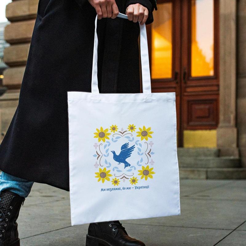 Сумка шопер із принтом "ми українці" біла