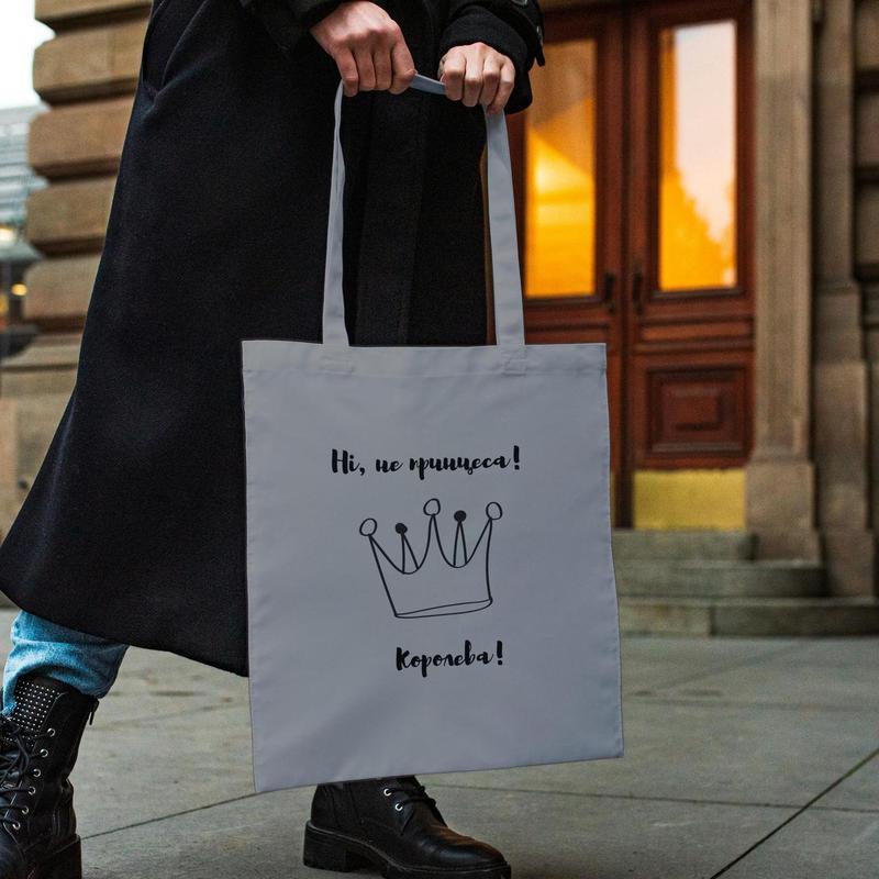 Сумка шоппер с принтом "не принцесса! королева!" серая