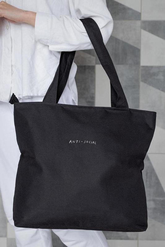 Женская сумка эко-шоппер тканевая с принтом antisocial black