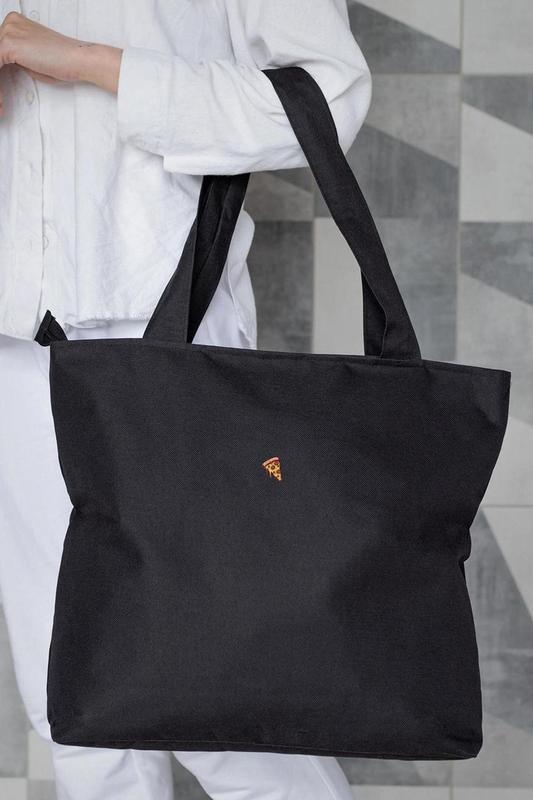 Женская сумка эко-шоппер тканевая с принтом pizza black