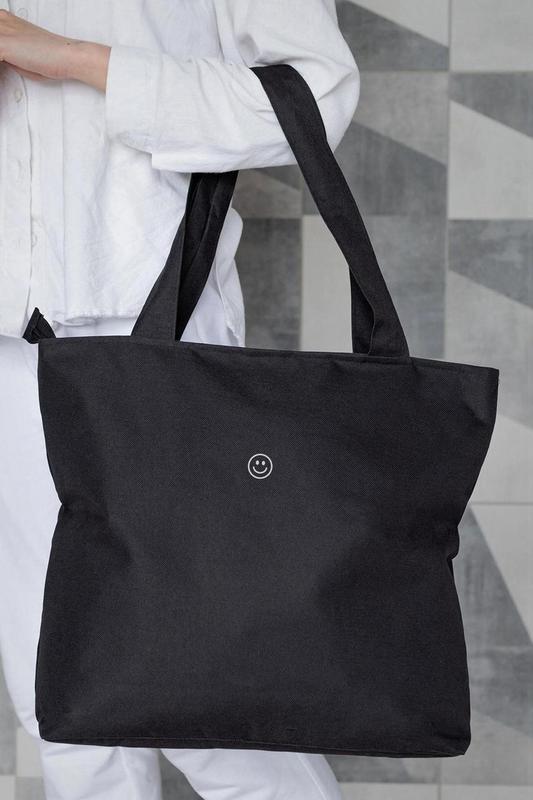 Женская сумка эко-шоппер тканевая с принтом smile black