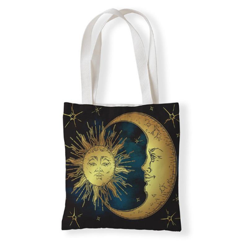 Сумка шоппер , эко сумка солнце и луна , эко шопер солнце и луна, эко торба черная