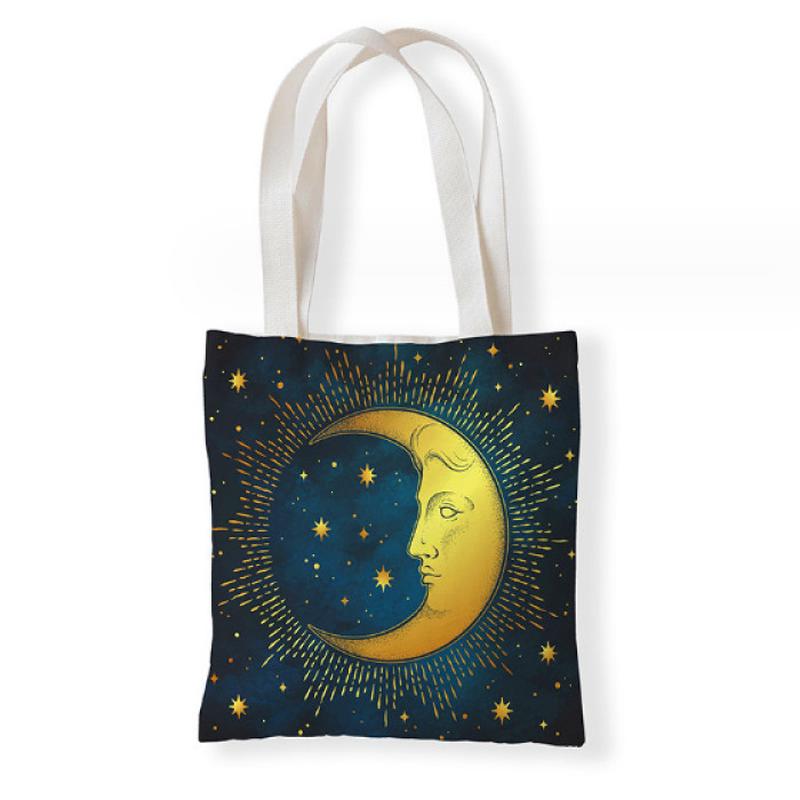 Сумка шоппер , эко сумка луна , эко шопер солнце и луна, эко торба черная