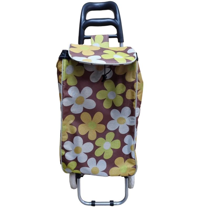 Тачка сумка с колесиками a-plus тележка 90 см (366 st) цветочный принт на коричневом