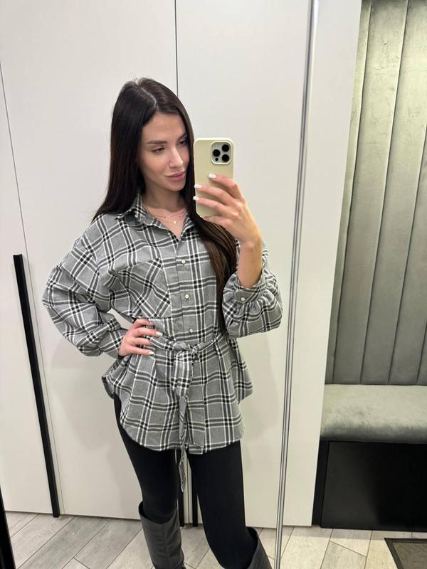 Сорочка Розміри: 42-44, 46-48 Тканина: фланель Цвет: беж, серая Стильна та легка сорочка, ідеальна річ, яка підійде до будь-якого образу! Пояс йде в комплекті!