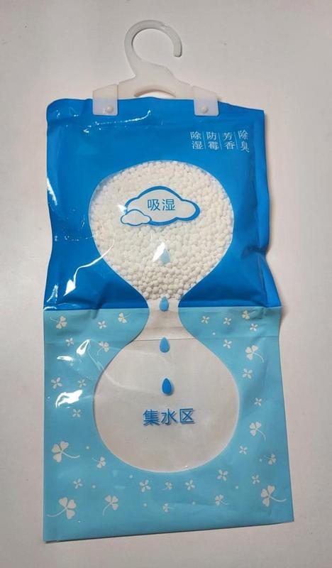 Поглотитель влаги - инновационное устройство, которое эффективно устраняет проблему повышенной влажности в любом помещении с помощью абсорбирующих гранул. Представляет собой небольшой пластиковый мешочек, разделённый на два яруса. В верхней части размещены влагопоглощающие гранулы, состоящие из активных кристаллов и активированного угля. Нижний ярус пакета полый (пустой). Гранулы впитывают влагу из воздуха и набухают. Когда накопившаяся влага будет переизбыточна, то вода станет постепенно стекать в резервуар, расположенный в нижней части мешочка. Можно размещать в шкафу или на окнах при конденсации, в ванной комнате и т. п. Отсутствие электрического шнура делает прибор предельно мобильным. Борется с образованием влаги, плесневых запахов, с конденсацией и т. п. Размер контейнера: 30х16 cм, длина вешалки: 7 см. Вес: 240 г. Срок действия: по мере наполнения нижнего резервуара. Поглощает до 450 мл влаги. Прочность крючка рассчитана на вес упаковки, заполненной водой. Одноразового использования.