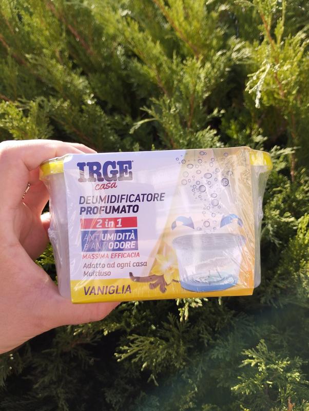 Поглотитель запаха и влаги Irge 2 in 1 Vaniglia - это эффективный осушитель воздуха, который мгновенно устраняет чрезмерную влажность и наполняет помещение нежным ароматом ванили. Благодаря двухфункциональной формуле это средство обеспечивает комфортную влажность воздуха и нейтрализует неприятные запахи, создавая уютную атмосферу. Контейнер с двумя отсеками позволяет гранулам в верхнем отсеке поглощать влагу и одновременно излучать приятный аромат, в то время как нижний отсек накапливает лишнюю жидкость. Особенности Irge 2 in 1 Vaniglia: - двойное действие: поглощение влаги и ароматизация ванилью; - поддерживает оптимальную влажность и устраняет затхлость; - прост в использовании и экономичен; - не требует электроэнергии; - подходит для любых жилых помещений; - соответствует европейским стандартам качества благодаря итальянскому производству. Способ применения: 1. Снимите перфорированный пластиковый колпачок, откройте алюминиевую фольгу под ним. 2. ВАЖНО: Не снимайте белый лист. 3. Поверните колпачок и разместите поглотитель в выбранном помещении. 4. Когда гранулы растворятся, откройте белый лист и слейте накопленную жидкость.