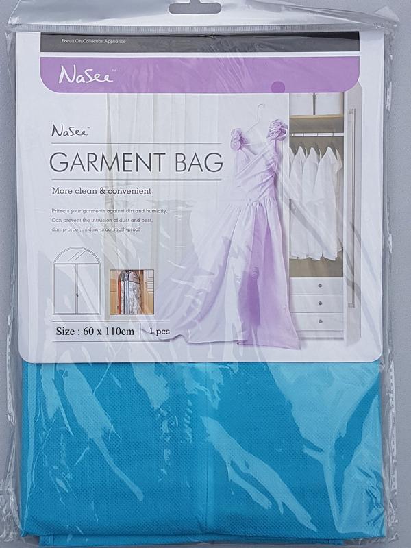 Чехол для хранения и упаковки одежды на молнии флизелиновый голубого цвета. Размер 60 см*110 см. Чехол изготовлен из флизелина ― это дышащяя ткань, которая не пропускает влагу, пыль, грязь, моль и т.д., но в то же время дает одежде дышать. Вверху чехла есть отверстие для крючка, также по центру чехла идет молния. Верхняя часть чехла прозрачная, чтобы можно было увидеть какая вещь лежит в чехле, не открывая его. Чехол будет Вам незаменимым помощником для деликатного и правильного хранения одежды. Удобен и практичен в использовании. Сфера использования: магазины, бутики, свадебные салоны, химчистки, ателье, цеха по пошиву одежды, а также в домашнем использовании.