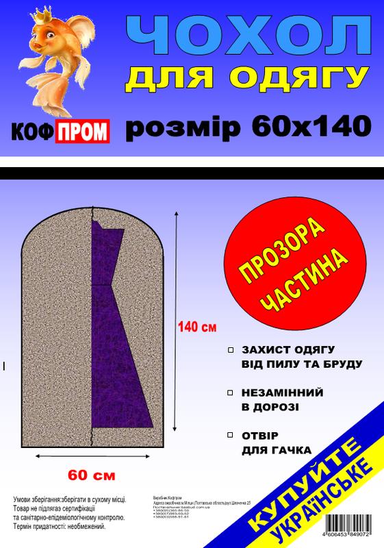 Чехол для хранения и упаковки одежды на молнии флизелиновый черного цвета. Размер 60 см*140 см. Чехол изготовлен из флизелина ― это дышащяя ткань, которая не пропускает влагу, пыль, грязь, моль и т.д., но в то же время дает одежде дышать. Вверху чехла есть отверстие для крючка, также по центру чехла идет молния. Спереди половина чехла прозрачная, для того, чтобы было видно какая вещь в нем лежит. Чехол будет Вам незаменимым помощником для деликатного и правильного хранения одежды. Удобен и практичен в использовании. Сфера использования: магазины, бутики, свадебные салоны, химчистки, ателье, цеха по пошиву одежды, а также в домашнем использовании.