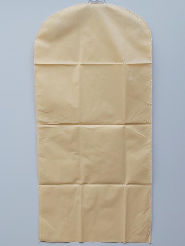 Чехол для хранения и упаковки одежды флизелиновый бежевого цвета. Размер 60 см*120 см, в упаковке 3 штуки. Чехол изготовлен из флизелина ― это дышащяя ткань, которая не пропускает влагу, пыль, грязь и т.д., но в то же время дает одежде дышать. Вверху чехла есть отверстие для крючка, данная модель чехла используется как колпак, снизу чехол никак не закрывается, так как он идет без молнии или липучек. Чехол будет Вам незаменимым помощником для деликатного и правильного хранения одежды. Удобен и практичен в использовании. Сфера использования: магазины, бутики, свадебные салоны, химчистки, ателье, цеха по пошиву одежды, а также в домашнем использовании.