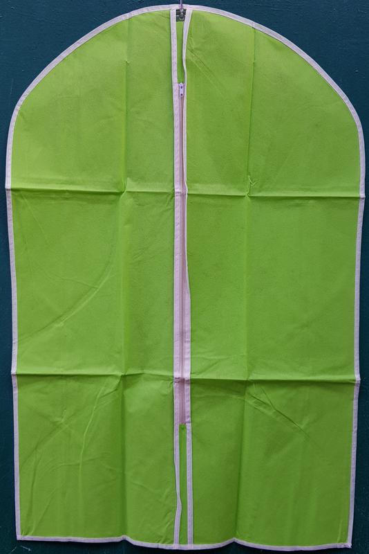 Чехол для хранения и упаковки одежды на молнии флизелиновый салатового цвета. Размер 60 см*137 см. Чехол изготовлен из флизелина ― это дышащяя ткань, которая не пропускает влагу, пыль, грязь, моль и т.д., но в то же время дает одежде дышать. Вверху чехла есть отверстие для крючка, также по центру чехла идет молния. Чехол будет Вам незаменимым помощником для деликатного и правильного хранения одежды. Удобен и практичен в использовании. Сфера использования: магазины, бутики, свадебные салоны, химчистки, ателье, цеха по пошиву одежды, а также в домашнем использовании. ##