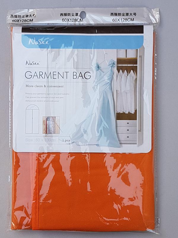 Чехол для хранения и упаковки одежды на молнии флизелиновый оранжевого цвета. Размер 60 см*130 см. Чехол изготовлен из флизелина ― это дышащяя ткань, которая не пропускает влагу, пыль, грязь, моль и т.д., но в то же время дает одежде дышать. Вверху чехла есть отверстие для крючка, также по центру чехла идет молния. Верхняя часть чехла прозрачная, чтобы можно было увидеть какая вещь лежит в чехле, не открывая его. Чехол будет Вам незаменимым помощником для деликатного и правильного хранения одежды. Удобен и практичен в использовании. Сфера использования: магазины, бутики, свадебные салоны, химчистки, ателье, цеха по пошиву одежды, а также в домашнем использовании.