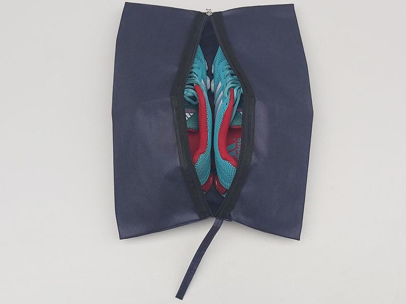## Чехол-сумка темно-синего цвета для хранения и упаковки обуви на змейке. Размеры ширина 27 см, длина 38 см. Чехол-сумка предназначена для транспортировки и хранения сменной обуви и одежды. Это незаменимый аксессуар для людей занимающихся спортом и ведущих активный образ жизни, также очень удобна в домашнем использовании: ваша обувь всегда будет в порядке, защищена от пыли, влаги и т.д. Данная модель сумки имеет одно отделение и есть расширение, закрывается на змейку. Также есть крепкая ручка для удобства ношения. В сложенном виде сумка-чехол очень компактна и занимает мало места. Очень удобно брать с собой в поездки, командировки, в тренажерный зал, бассейн, также незаменима для хранения обуви дома. Красивая и практичная в использовании.