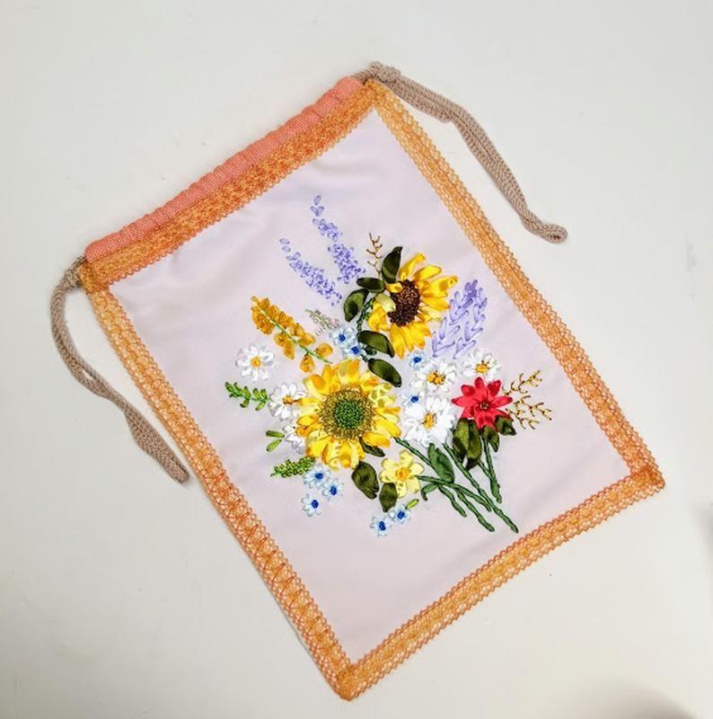 Мешочек для хранения вещей с вышивкой. Ручная работа. Вышит ленточками и бисером. Внутри два кармашка. Размер: 36*27, кармашки- 17*17 и 17*8. 100% предоплата, доставка НП.