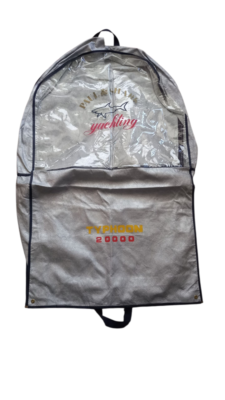 плотный, объёмный есть молния и кнопки.ткань не пропускает запахи и влагу.