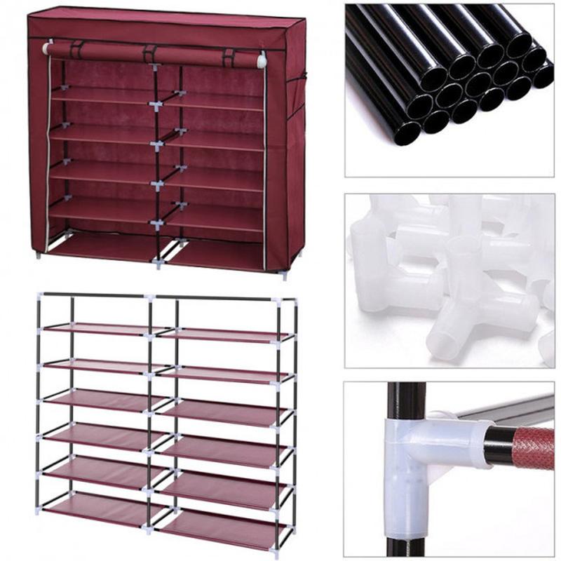 Тканевый шкаф для хранения обуви Не обязательно покупать дорогостоящий, громоздкий шкаф, достаточно будет приобрести недорогой, но очень практичный тканевый шкаф для хранения вещей и обуви. Для различных мелких вещей на одной из стенок шкафа предусмотрен большой карман. Описание: Шкаф с тканевым чехлом ничуть не уступает по вместительности и функциональности любому другому шкафу из дерева. Он является прекрасным сочетанием оптимальной цены и качества. Надежная, и в тоже время, простая конструкция этого шкафа позволяет использовать его повсеместно. Легко собирается и переносится с места на место. Защищает Ваши вещи, обувь и аксессуары от пыли. Основными преимуществами сборного шкафа являются его небольшие габариты в сложенном виде, легкие по весу материалы, удобство сборки. Преимущества: - Оптимальное сочетание цены и качества - Простота сборки, установки и транспортировки - Достаточное кол-во полок для хранения вещей и обуви - Качественный материал - легкий, дышащий и водоотталкивающий Неоспоримым плюсом данного изделия является простота сборки и транспортировки.