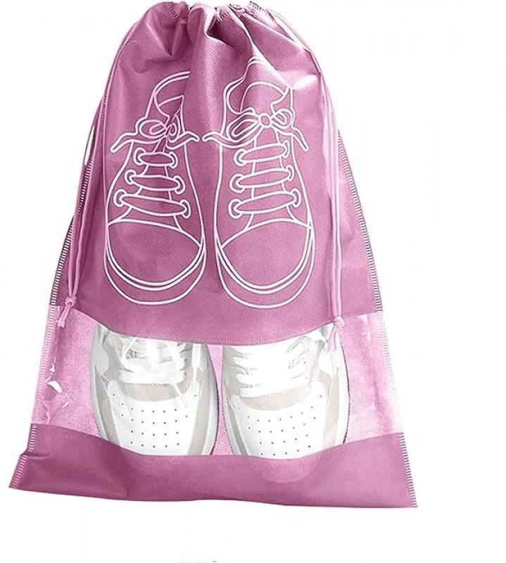 Сумка для обуви на завязках с окошком розовый 41х31см