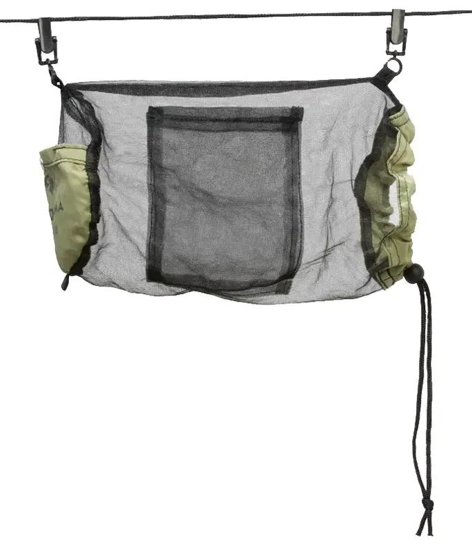 Органайзер Amazonas Organizer - небольшой сетчатый карман для гамака, который можно удобно подвесить на веревке с помощью небольших прищепок. Имеет основное большое отделение, которое затягивается веревкой с фиксатором, два внутренних кармана и один боковой. В органайзер можно положить любые мелкие вещи, чтобы пони не были разбросаны по гамаку и не потерялись. В комплект входит чехол для транспортировки.