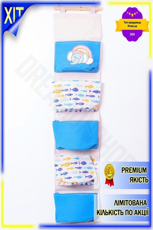 Dm подвесной органайзер 5 спецификация 2.2 карманов синий для детских вещей канцелярии кос...