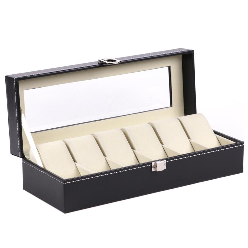 Шкатулка для хранения 6-ти часов. Материал корпуса - PU кожа, стекло. Цвет - черный. Интерьер - светлый бархат. Производитель - компания Craft, Тайвань. Размеры: длина 30 см ширина 11 см высота 8 см
