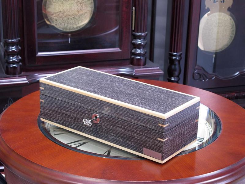 Шкатулка для нерухомого зберігання 5-ти годинників. Матеріал корпусу - дерево. Колір - сірий, матове покриття. Інтер'єр - оксамит пісочного кольору. Виробник - компанія Salvadore, Австрія. Розміри: 30,5х12,5х9,5 см
