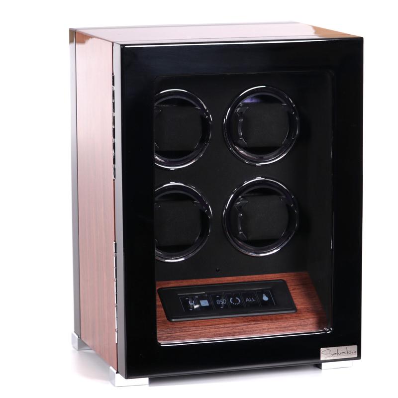 Скринька для автопідзаводу 4-x годинників. Матеріал корпусу - дерево. Колір - коричневий. Виробник - компанія Salvadore, Австрія. Розміри шкатулки: 36*32*41см