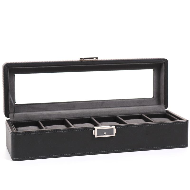 Скринька для нерухомого зберігання 6 годинників. Матеріал корпусу - PU шкіра. Колір - чорний. Інтер'єр - темний оксамит. Виробник - компанія Salvadore, Австрія. Розмір: 34*10.5*8 см