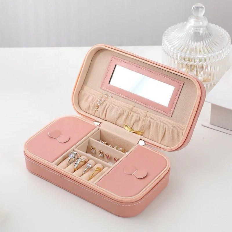 Цей рожевий світлий футляр для прикрас – ідеальне рішення для дбайливого зберігання та транспортування Ваших улюблених аксесуарів. Його витончений та стильний дизайн привертає увагу, роблячи футляр не просто місцем для зберігання, а й справжньою окрасою Вашого туалетного столика. Усередині футляра розташовані різні відділення, спеціально створені для кілець, сережок, браслетів та ланцюжків, що дозволяє акуратно розкласти кожну прикрасу та зберегти її первісний вигляд. Бічні відділи закриваються, що забезпечує додаткову безпеку прикрас. М'яка внутрішня оббивка з ніжного бархатистого матеріалу захищає коштовності від подряпин та пошкоджень, гарантуючи, що вони завжди будуть виглядати як нові. Дзеркальце всередині кришки робить футляр ще функціональнішим: Ви можете швидко оцінити, як вибрані прикраси доповнюють Ваш образ. Завдяки своєму невеликому розміру 18 см х 10 см х 5,5 см цей футляр легко поміщається в сумці або валізі, що робить його відмінним супутником у подорожах. Але при цьому він досить місткий, тому підходить і для використання щодня. Надійна застібка запобігає випадковому відкриттю, а ніжний рожевий відтінок додає романтичності та витонченості. Цей футляр стане незамінним помічником у повсякденному житті. Характеристики футляру для прикрас Розмір: 18 х 10 х 5,5 см Матеріал : екошкіра Колір : Рожевий
